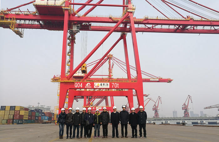 次日,在日照港客戶的大力支持下,考察團(tuán)隨同我司工作人員前往日照港,參觀考察了我司為其定制生產(chǎn)的大型岸橋、場橋、糧食碼頭門座起重機(jī)等設(shè)備,使考察團(tuán)對(duì)設(shè)備的現(xiàn)場使用情況有了更進(jìn)一步了解。