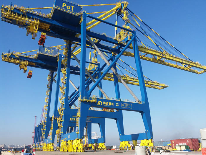 該批設(shè)備于2016年12月10日在海西重機(jī)制造現(xiàn)場成功滾裝發(fā)運,南下印度洋,北上大西洋,穿越地中海,航行一萬六千海里,歷經(jīng)2個多月的時間,于當(dāng)?shù)貢r間2017年2月27日上午安全抵達(dá)的黎波里港。為確保儀式順利舉行,設(shè)備抵達(dá)后,海西團(tuán)隊加班加點,齊心協(xié)力,克服現(xiàn)場多重困難,全力開展卸船工作。歷時6天,海西人打贏了一場卸船攻堅戰(zhàn),保證了儀式的準(zhǔn)時開展。高大威猛的“鋼鐵巨人”屹立在的黎波里港,與美麗的地中海交相輝映,為碼頭增添了一道亮麗的風(fēng)景線,成為了的黎波里港口的新地標(biāo)。