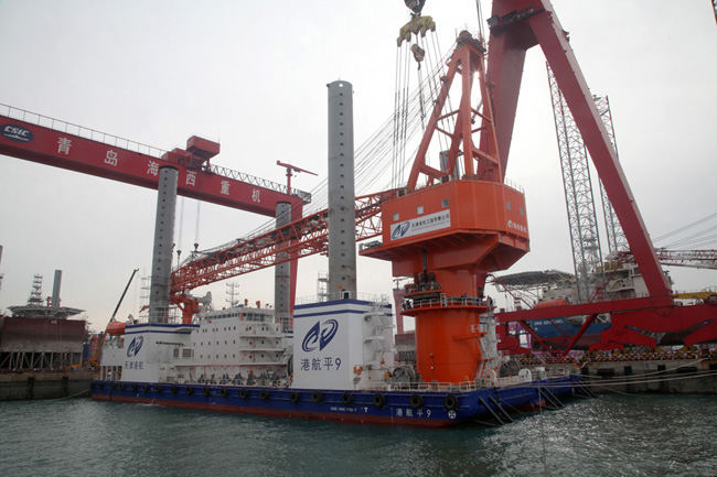11月19日,青島海西重機為天津港航工程有限公司制造的1200t全回轉浮式起重機順利完成整機吊裝。