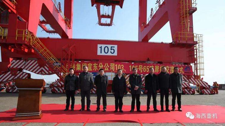 12月28日,由海西重機建造的2臺65噸岸橋交接暨列編儀式在上港集團宜東集裝箱碼頭分公司隆重舉行。上港集團宜東集裝箱碼頭分公司總經(jīng)理倪志平,黨委書記陳波,副總經(jīng)理廖勝前,黨委副書記、紀委書記、工會主席李軍,青島海西重機有限責任公司黨委副書記、總經(jīng)理張懷志,副總經(jīng)理代振華等出席儀式。