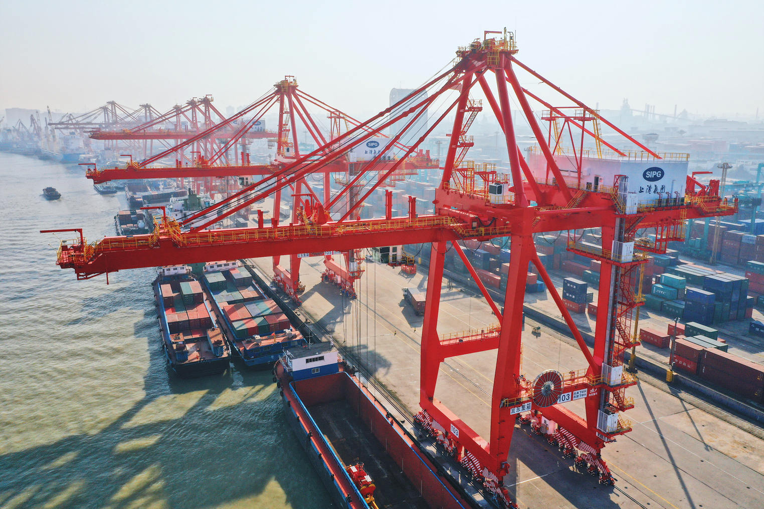 12月18日,海西重機(jī)為上港集團(tuán)宜東集裝箱碼頭分公司制造的2臺65t-38m岸橋順利交付。