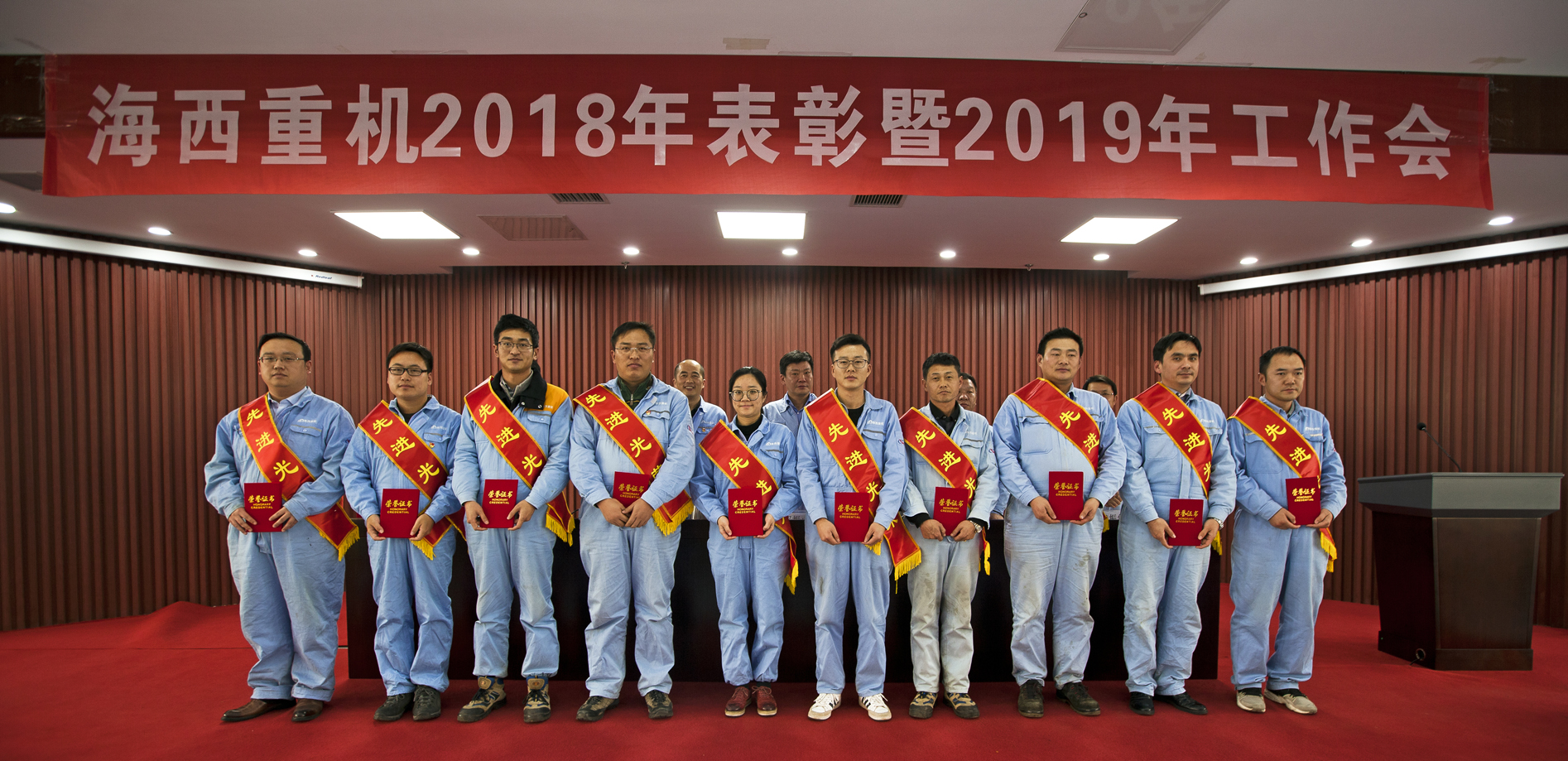 1月19日,海西重機(jī)2018年表彰暨2019年工作會(huì)在901會(huì)議室順利召開(kāi),公司主管及以上管理人員、2018年度優(yōu)秀管理者、優(yōu)秀員工參加會(huì)議,公司黨委書(shū)記、董事長(zhǎng)鄧振山主持會(huì)議。