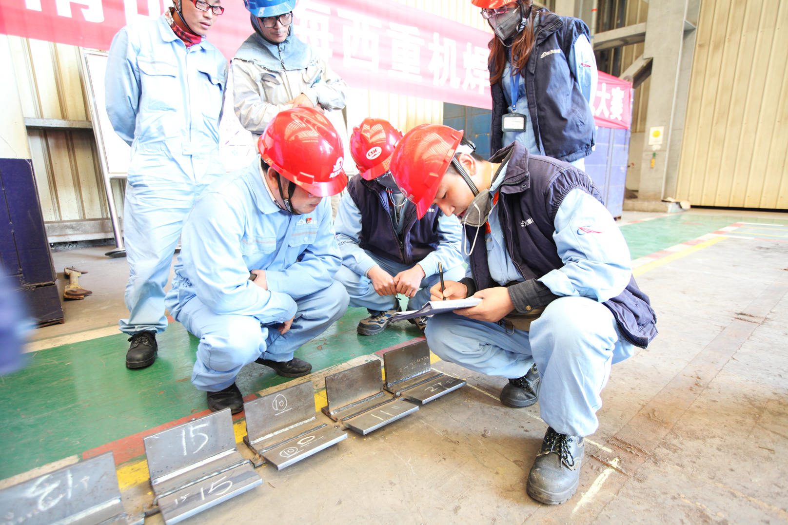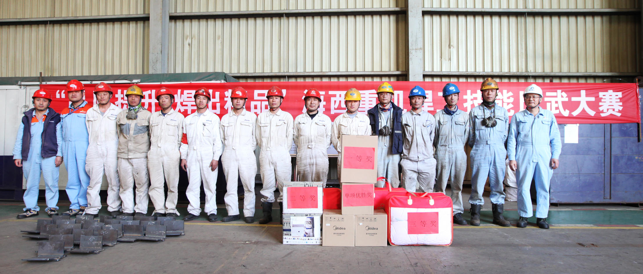 “誰(shuí)英雄誰(shuí)好漢,技能賽場(chǎng)比比看”。比賽開(kāi)始后,參賽選手們熱情高漲,頭戴防護(hù)罩,手持電焊槍,全神貫注,弧光四溢,焊花飛舞,竭力發(fā)揮出自己的最佳水平。經(jīng)過(guò)激烈角逐,來(lái)自海工部盛天協(xié)理公司的楚京輝獲得冠軍,鋼構(gòu)部員工王善焦和劉兵獲得亞軍,海工部盛天協(xié)理公司的楊濱、大連海洋協(xié)理單位的包時(shí)住和鋼構(gòu)部裕安協(xié)理公司的胡永飛獲得季軍。另外,鋼構(gòu)部恒康協(xié)理公司的郭克進(jìn)、鋼構(gòu)部員工范順?lè)濉⒑槔f(xié)理公司趙云分別獲得平角焊、橫焊及立焊單項(xiàng)優(yōu)勝獎(jiǎng)。他們憑借工作過(guò)程中日積月累練就的一絲不茍、精益求精的精神為我們獻(xiàn)上了精美的焊接作品,是海西重機(jī)工匠精神的代表。
