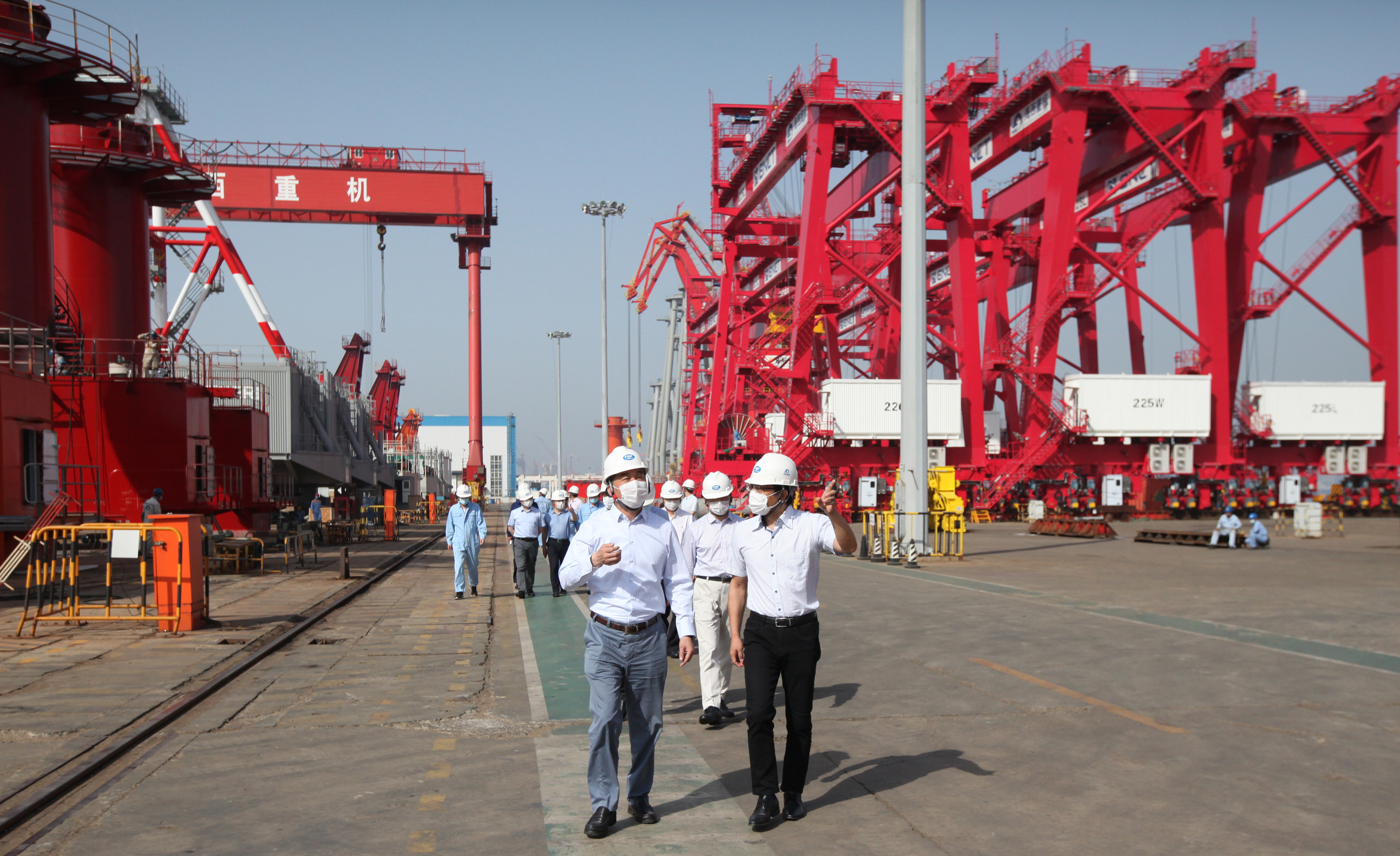 6月4日,中國(guó)船舶集團(tuán)有限公司黨組成員、副總經(jīng)理孫偉一行到武漢船機(jī)海西重機(jī)考察調(diào)研。武漢船用機(jī)械有限責(zé)任公司黨委書(shū)記、董事長(zhǎng)馬聚勇,青島海西重機(jī)有限責(zé)任公司黨委書(shū)記、董事長(zhǎng)鄧振山,中國(guó)船舶集團(tuán)有限公司有關(guān)領(lǐng)導(dǎo)等陪同考察。