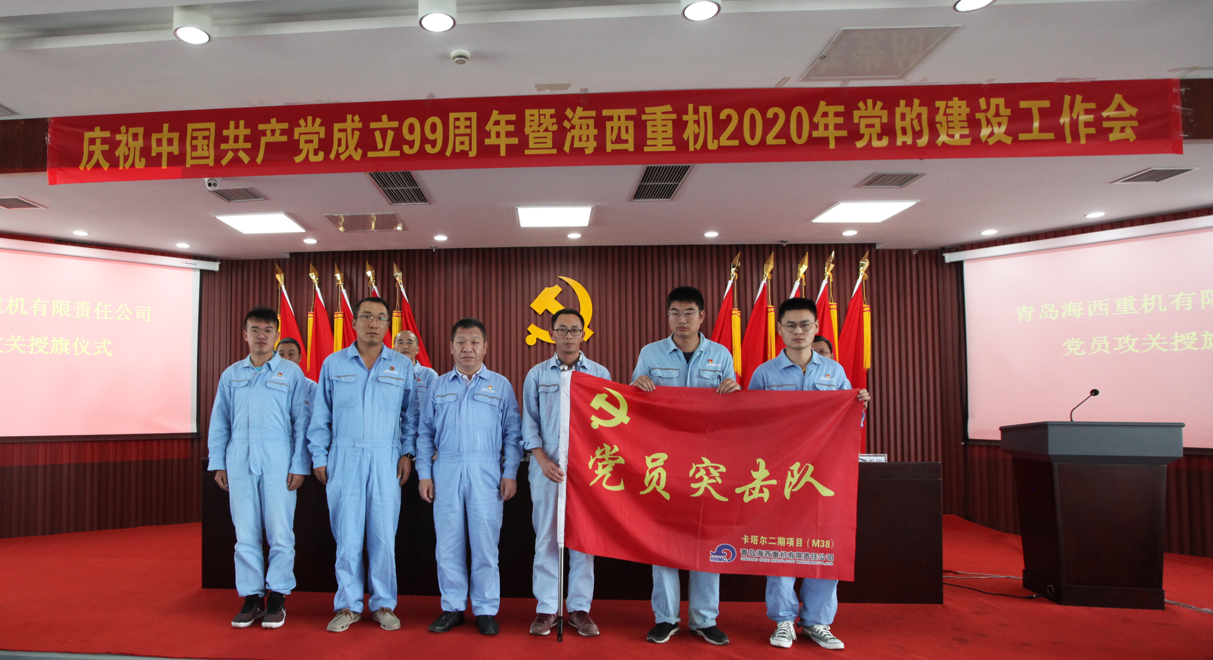 在天津港項(xiàng)目和卡塔爾二期項(xiàng)目授旗儀式上,公司黨委委員、副總經(jīng)理代振華、黨員攻關(guān)小組組長(zhǎng)作分別作動(dòng)員講話和表態(tài)發(fā)言,公司黨委副書記、總經(jīng)理張懷志進(jìn)行授旗并作總結(jié)講話,要求各黨支部高度重視攻關(guān)項(xiàng)目,提高政治站位,肩負(fù)“交付使命”,充分發(fā)揮黨員先鋒模范作用,以“咬定青山不放松”的韌勁,“不破樓蘭終不還”的拼勁,“踏平坎坷成大道”的闖勁,帶領(lǐng)廣大員工樹立主人翁精神,攻堅(jiān)克難,真抓實(shí)干,堅(jiān)決按期保質(zhì)保量完成攻關(guān)目標(biāo)。