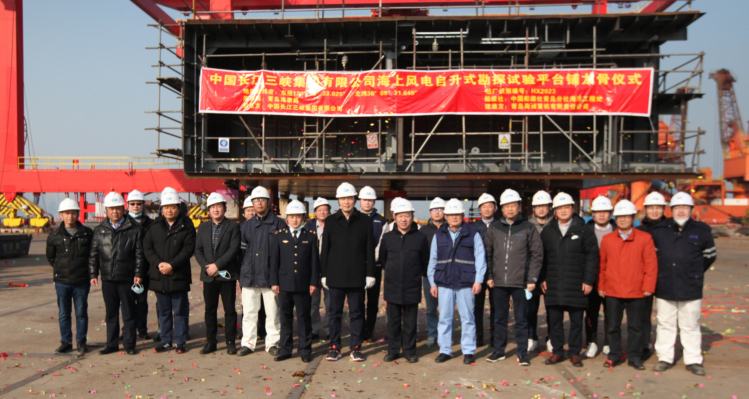 12月22日上午,在青島海事局、中國船級(jí)社青島分社、中國長江三峽集團(tuán)有限公司、中國船舶集團(tuán)旗下武漢船機(jī)海西重機(jī)各方代表共同見證下,“中國三峽101”海上風(fēng)電自升式勘探試驗(yàn)平臺(tái)順利完成鋪龍骨儀式,標(biāo)志著該項(xiàng)目正式進(jìn)入平臺(tái)搭載建造階段。