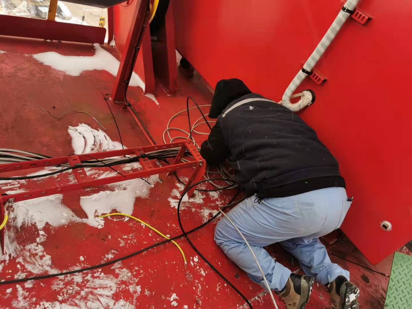 自2020年12月31日開始,為了追趕進(jìn)度,我們團(tuán)隊(duì)頂著冷風(fēng),放棄休息時(shí)間,把臂架到機(jī)房、司機(jī)室、電氣房的電纜敷設(shè)下來,進(jìn)行捆扎。為了與船廠穿鋼絲錯(cuò)開,吃飯的時(shí)間點(diǎn)總是往后推遲。甚至為了節(jié)省時(shí)間,自己提前帶好面包,中午簡單吃點(diǎn),為的就是把工作搶一搶,看著已經(jīng)穿到位的電纜,不禁感嘆隊(duì)友們的拼勁兒。