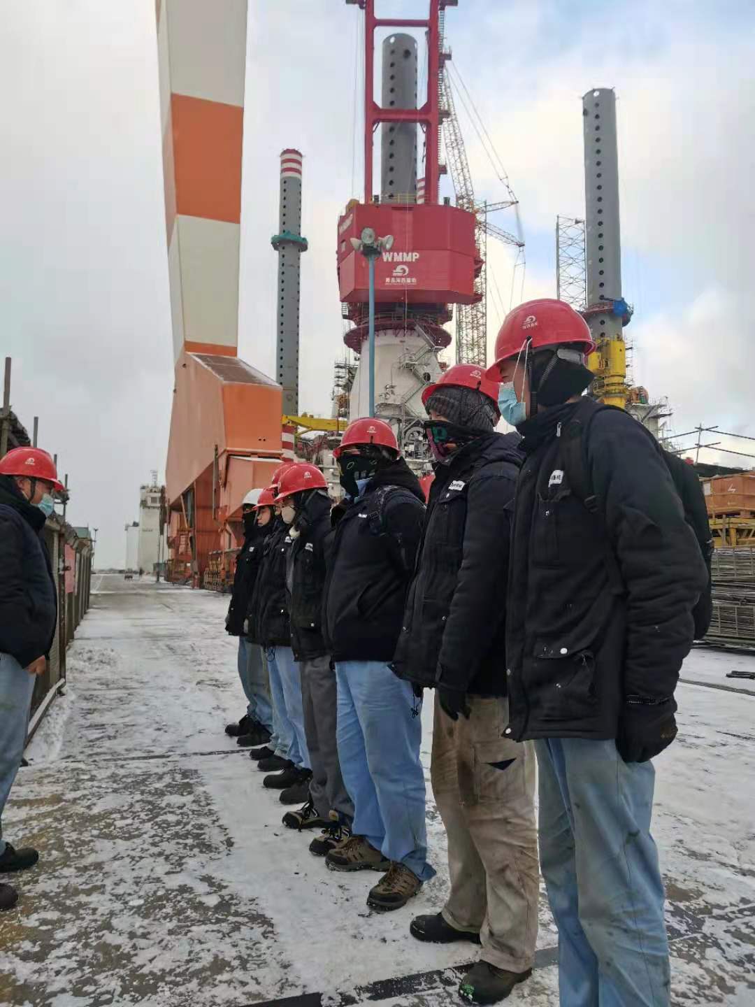 1月7日,山東經(jīng)歷了一次罕見的寒潮,煙臺(tái)下起了雪,這是第二場雪,也是我們要克服的又一個(gè)惡劣天氣,寒風(fēng)里摻雜著雪,氣溫也是零下好幾度。一如既往的早班會(huì),特意強(qiáng)調(diào)一下安全,然后根據(jù)現(xiàn)場情況,交代好工作,我們就整裝上陣,開始一天工作?,F(xiàn)場的問題在一個(gè)一個(gè)解決,堅(jiān)定了我們的信心。我常常鼓勵(lì)大家,“咱們?cè)傩量嘈量?,早日結(jié)束。”隊(duì)友們也會(huì)簡單回一句暖心的話,“這都不是事,我們都想早點(diǎn)干完?!?/span>