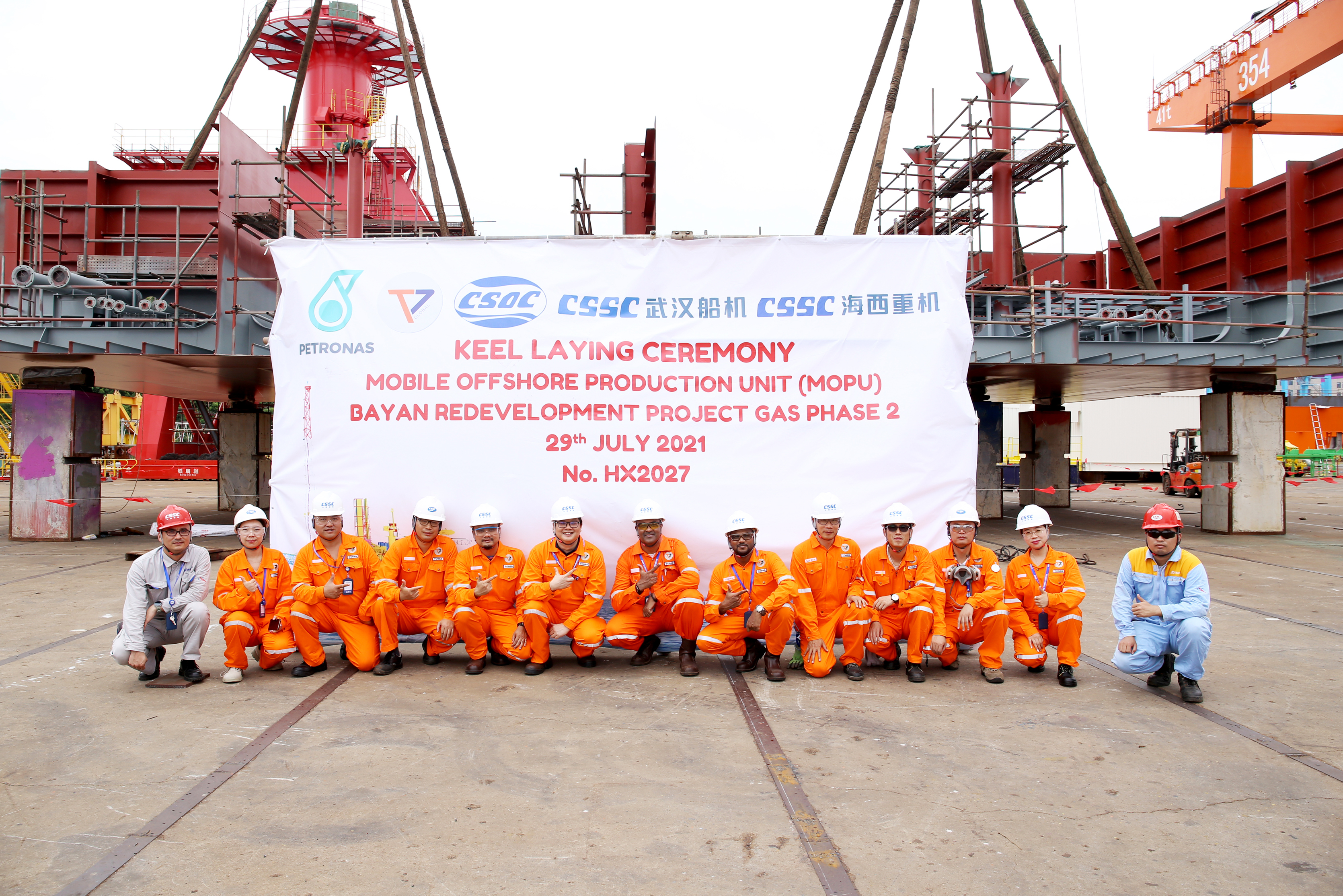 7月29日,馬來西亞可移動自升式生產(chǎn)(天然氣)平臺(簡稱MOPU)鋪龍骨儀式順利舉行,標(biāo)志著該平臺正式進(jìn)入船臺搭載階段。馬來西亞國家石油公司、T7 Global公司、ABS、中國船貿(mào)、中國船舶集團(tuán)旗下武漢船機(jī)海西重機(jī)各方代表通過現(xiàn)場會和遠(yuǎn)程視頻直播的方式參加了該儀式。