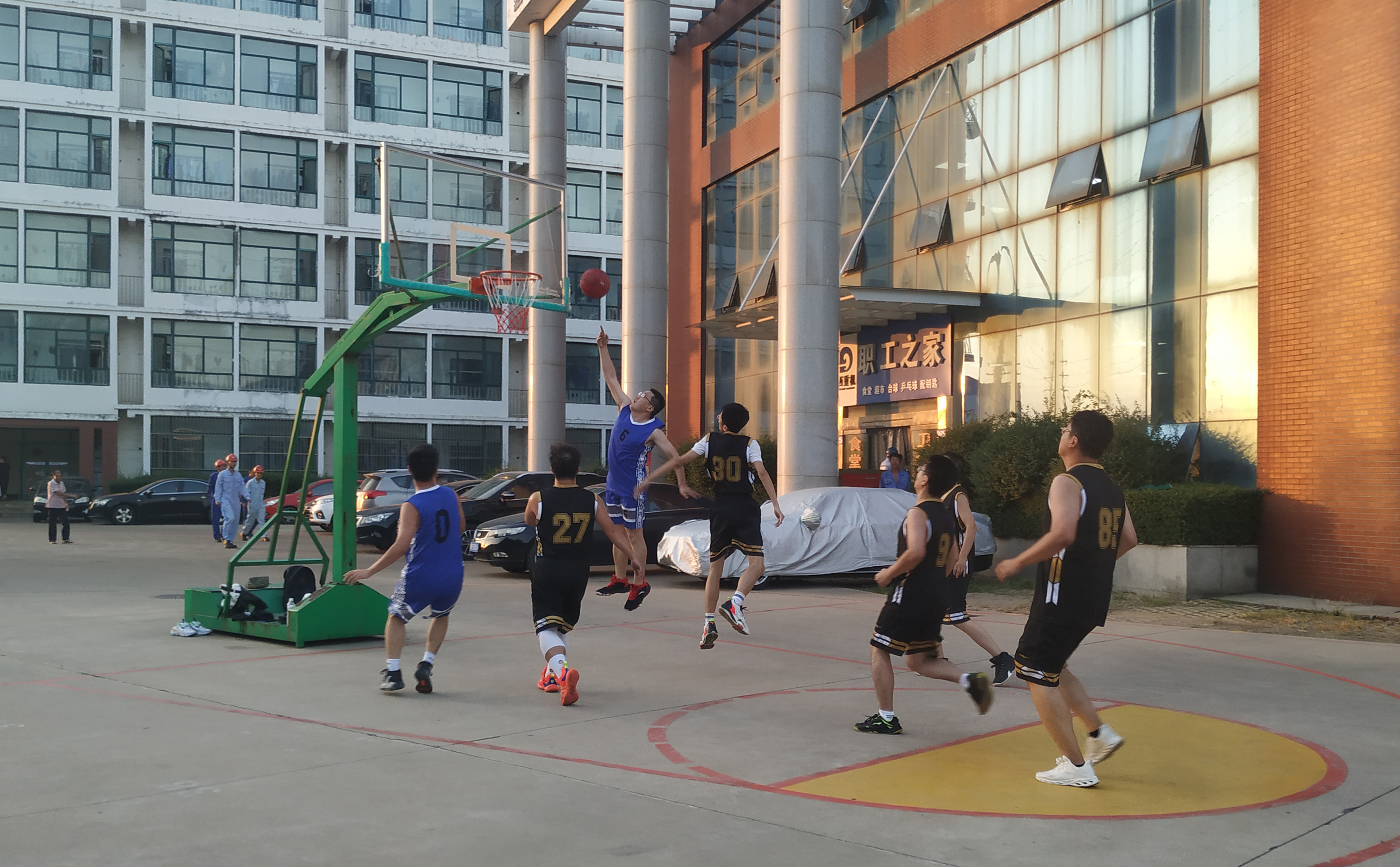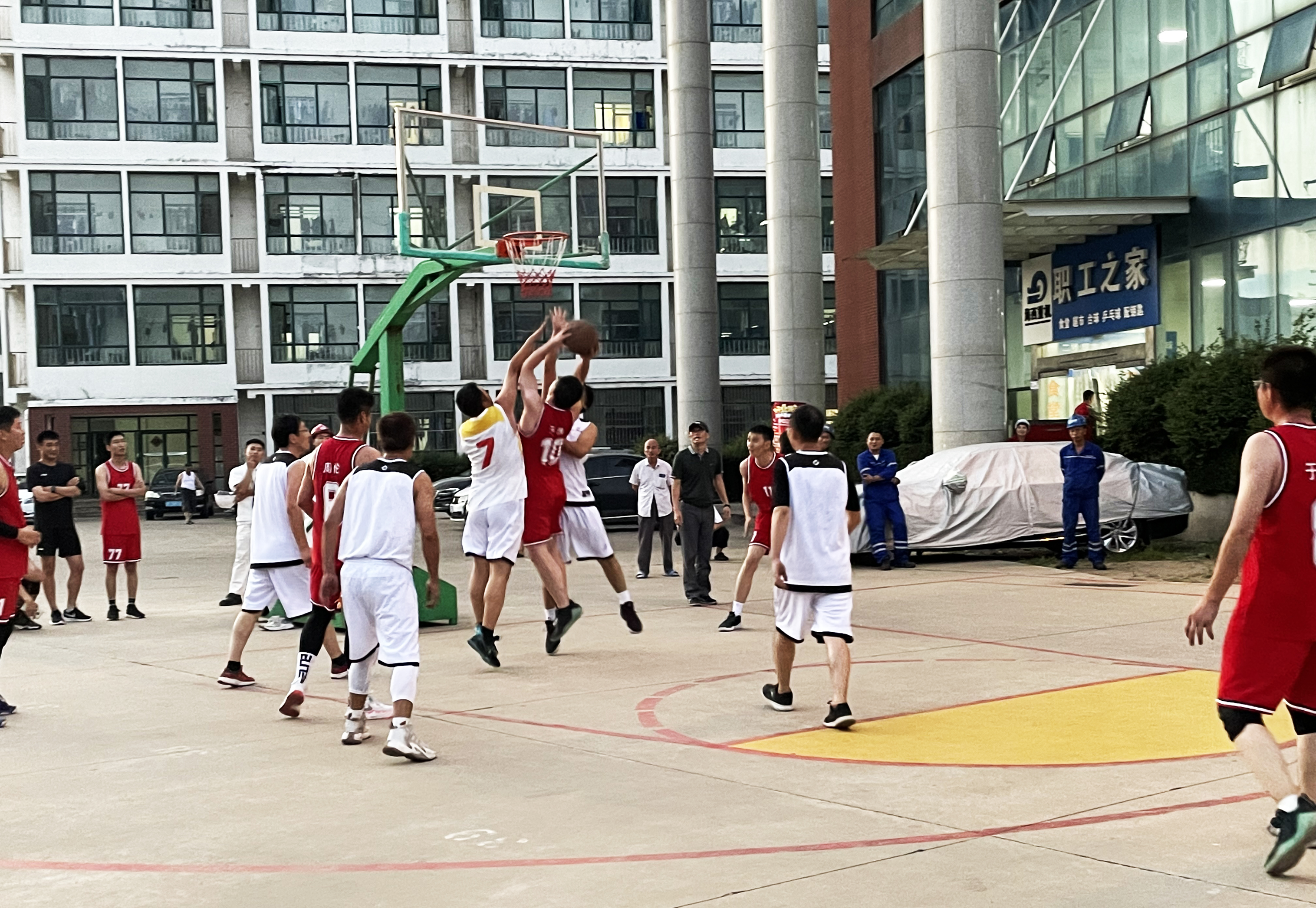 大家看球時(shí)笑說,“于永春長(zhǎng)胖了,跑動(dòng)速度慢了,說明公司的伙食不錯(cuò)啊,看來還得常打球,堅(jiān)持鍛煉啊?!薄袄钚駯|單場(chǎng)贏得22分,妥妥的得分王,他的進(jìn)攻真帥!”