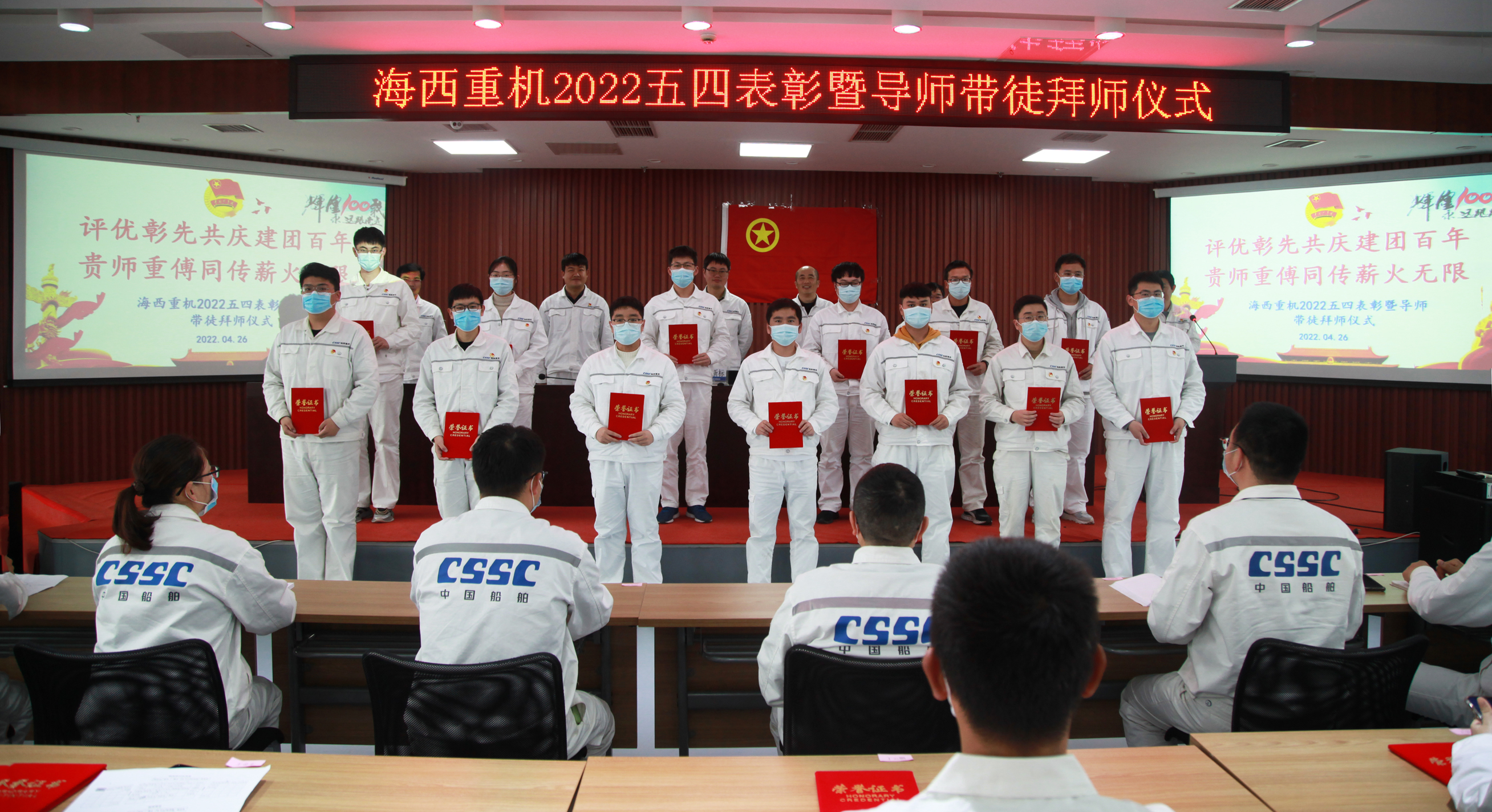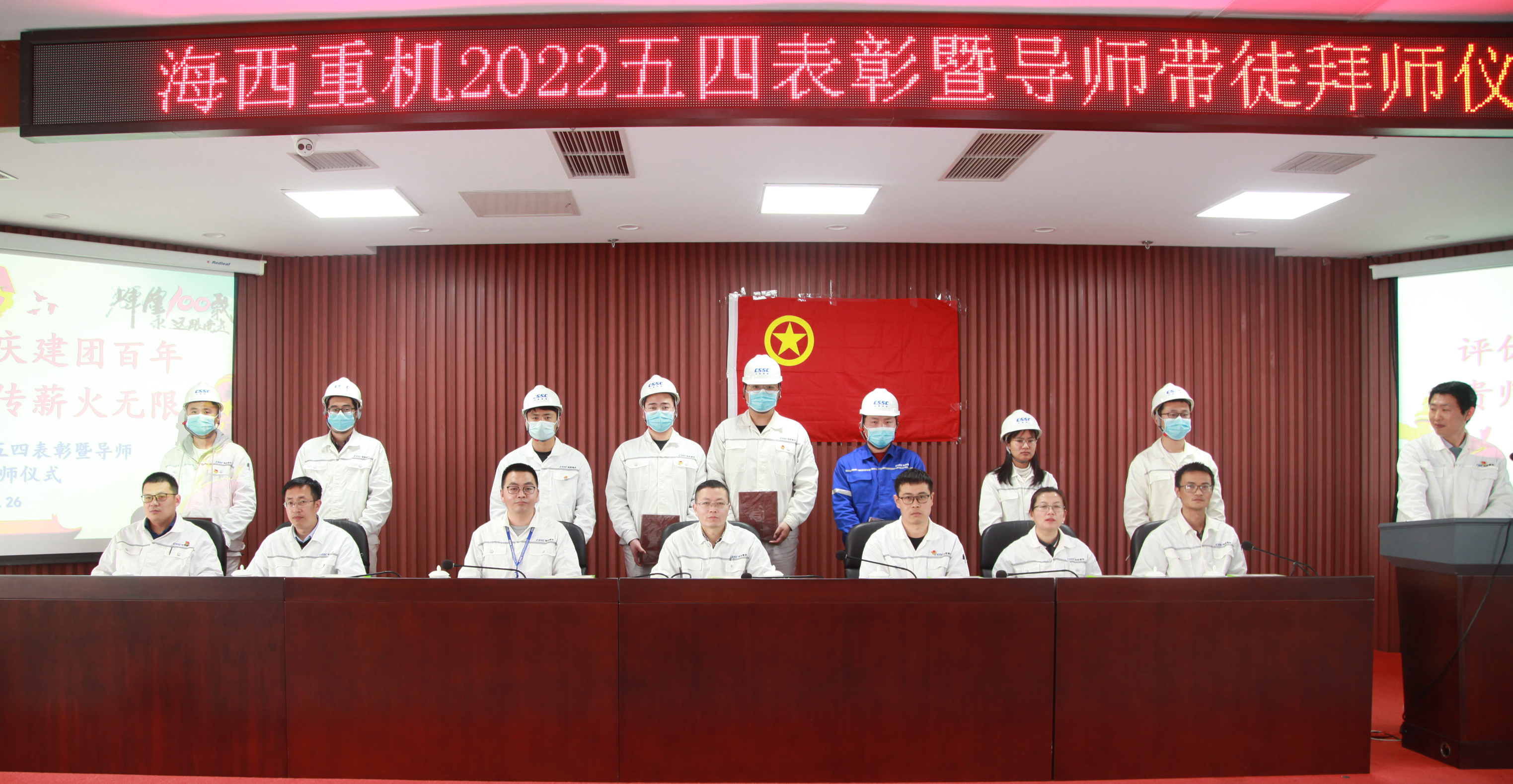 為樹立典型、表彰先進,激勵廣大團員青年以良好的精神面貌和優(yōu)良的工作業(yè)績迎接中國共產(chǎn)主義青年團成立100周年,促進公司青年人才隊伍建設,為公司高質(zhì)量發(fā)展注入活力,4月26日下午,中國船舶集團旗下武漢船機海西重機公司2022五四表彰暨導師帶徒拜師儀式在901會議室順利召開。海西重機黨委副書記、總經(jīng)理蔣新標,黨委副書記、紀委書記、工會主席朱聲凱,副總經(jīng)理謝宛朋,工會副主席金明清,團委書記張金營,人力資源部部長鄧向記,各五四表彰先進集體和個人,2021年優(yōu)秀師徒、2022年新結(jié)對師徒參加會議。