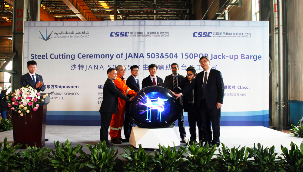 3月15日,中國船舶武漢船機海西重機承建的沙特JANA 150人生活服務平臺順利開工。JANA船東公司、ABS船級社、中國船貿、武漢船機、海西重機公司代表出席儀式。
