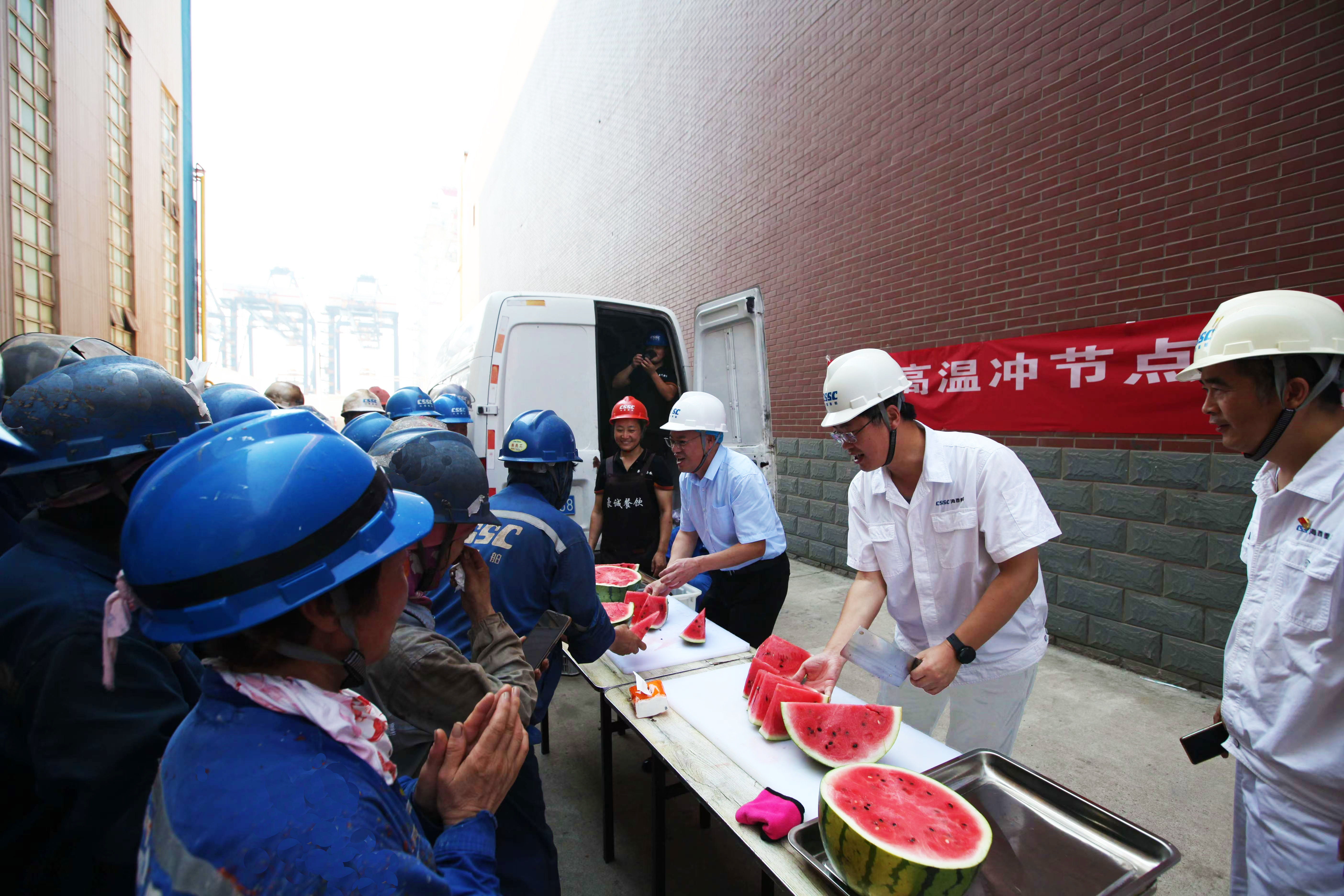 7月31日下午,武漢船機(jī)總會(huì)計(jì)師、工會(huì)主席陳世龍,海西重機(jī)總經(jīng)理蔣新標(biāo)、工會(huì)主席朱聲凱等公司領(lǐng)導(dǎo)來到生產(chǎn)現(xiàn)場,為大家送上了解暑西瓜,表達(dá)了對(duì)一線員工的辛勤付出的感謝,叮囑大家高溫高濕天氣下要加強(qiáng)自我保護(hù),注意作息,確保平安度夏。