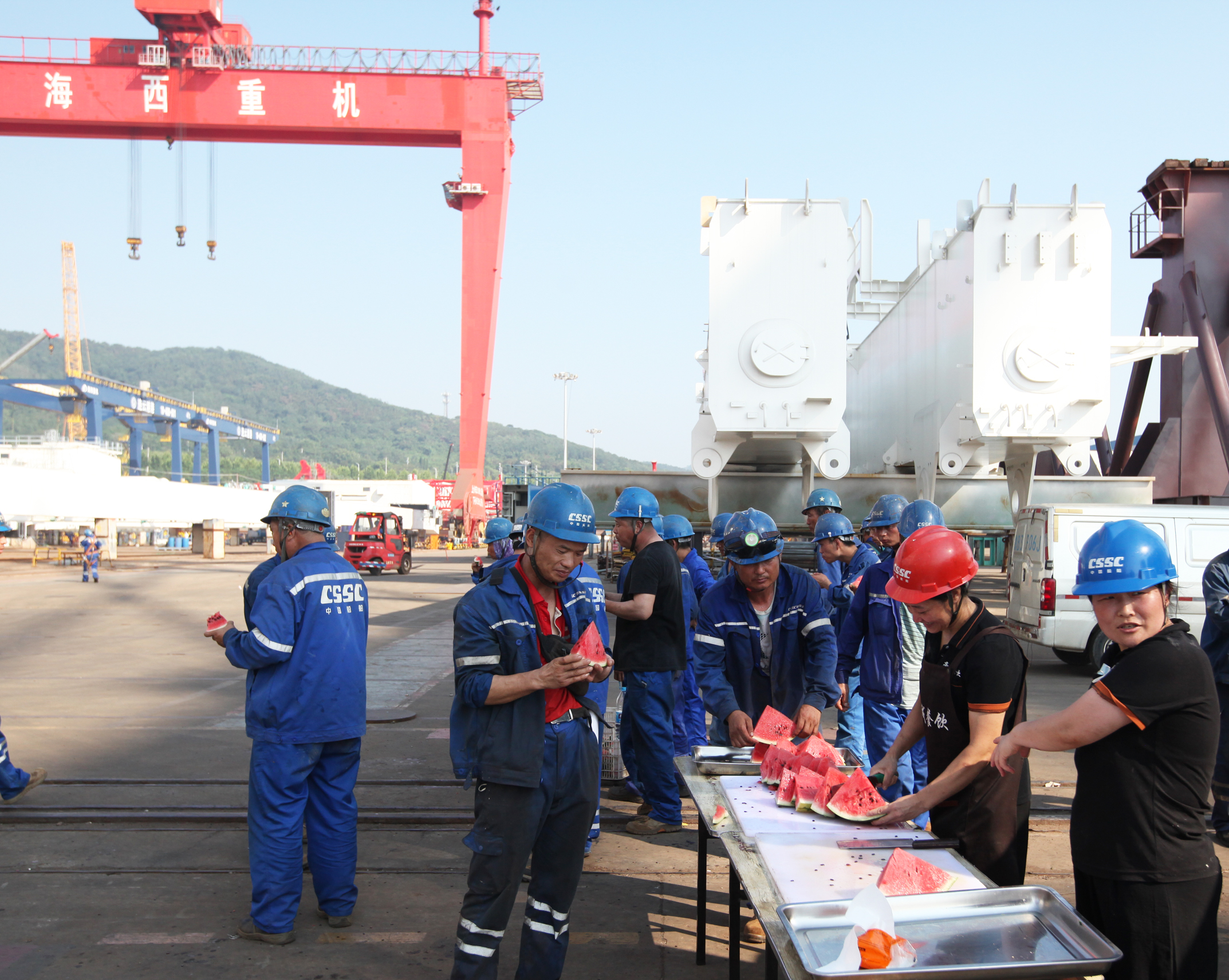 日盛三伏,酷暑炎炎。然而酷暑并不能阻擋住員工們大干快干的高漲熱情,各個(gè)生產(chǎn)項(xiàng)目都在緊鑼密鼓、熱火朝天地推進(jìn)著。為充分保障一線員工的生產(chǎn)安全和身心健康,中國船舶集團(tuán)旗下武漢船機(jī)海西重機(jī)公司于近日組織開展了“戰(zhàn)高溫沖節(jié)點(diǎn) 關(guān)愛一線員工”2024年夏季“送清涼”活動(dòng)。