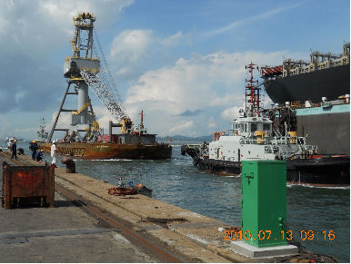 2010年7月15日,我公司為香港聯(lián)合船塢集團有限公司(HUD)承制的MQ5050門座起重機到達香港HUD公司碼頭并安全滾裝上岸。該門機采用臺車輔助、整機滾裝、整體捆扎、拖輪加平板駁船的運輸方式,從青島至香港航次歷時8天。