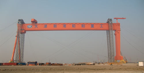 青島海西重機(jī)有限責(zé)任公司總承制的天津新港船舶重工有限責(zé)任公司臨港造修船基地首臺(tái)600噸×207米龍門(mén)吊,9月23日上午開(kāi)始預(yù)提升,9月26日下午13點(diǎn)36分開(kāi)始正式提升,于10月7日下午16點(diǎn)53分順利安裝到位,創(chuàng)下了國(guó)內(nèi)同類(lèi)型龍門(mén)吊提升時(shí)間最短紀(jì)錄。