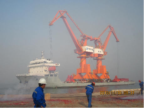 11月30日,我司為中國華能董家口港制造的2臺MQ4040門座起重機順利滾裝上船,為華能集團5+3.5萬噸級通用碼頭年底實現(xiàn)試運營創(chuàng)造了基礎條件。這兩臺門機是青島董家口港開建以來的首批到港的大型設備,也是公司搶占董家口港區(qū)的重要標志。為后續(xù)4臺MQ2538門座起重機的制造打下了堅實的基礎。