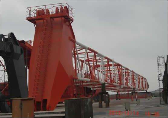 科研43A是我公司為江蘇南通韓通船舶重工有限公司生產的250T-30m風車安裝船用回轉起重機,整機重約為650T。這是我公司第一次生產海工產品,設計難度大,技術要求高,施工過程中出現(xiàn)問題多,而且工期要求緊。從一開始制作公司領導就極為重視,專門成立了以副總經(jīng)理為組長的生產小組,對生產中出現(xiàn)的問題盡量簡化程序,以最快的速度予以解決。目前,我公司負責生產的科研43A各部套結構件已順利制作完成,通過業(yè)主驗收,已達到發(fā)運條件。