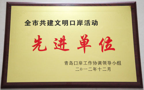 2012年度“全市共建文明口岸活動先進(jìn)單位”榮譽稱號花落青島海西重機(jī)有限責(zé)任公司。