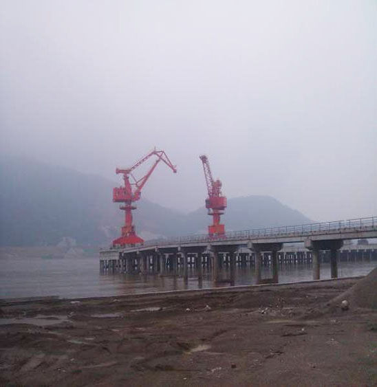 武穴港區(qū)件雜貨碼頭工程是武穴市“十一五”重點(diǎn)港航建設(shè)項目,是2009年度黃岡市交通“十件大事”和湖北省水運(yùn)建設(shè)“十大項目”之一,也是目前長江北岸下至安慶上至陽邏區(qū)間最大的件雜貨碼頭,青島海西重機(jī)兩臺門機(jī)的成功落軌標(biāo)志著該項目已取得了初步成功。