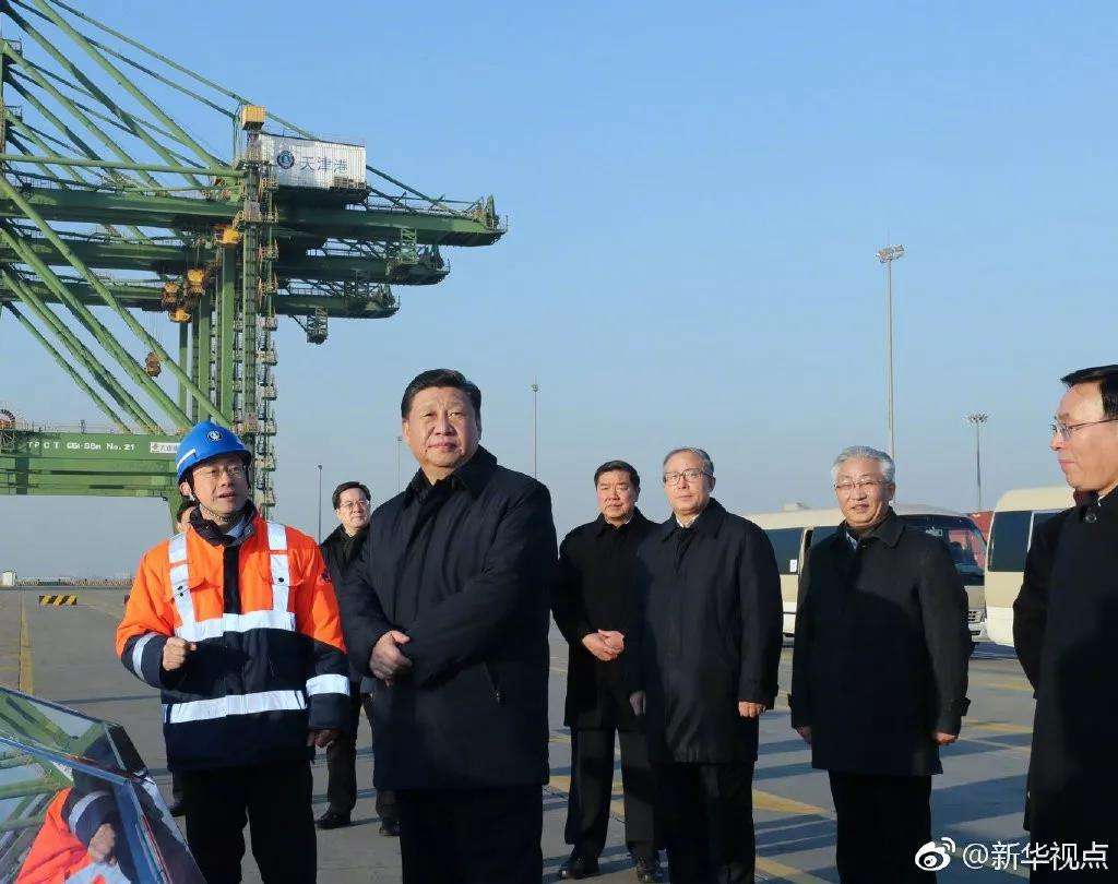 17日下午,正在天津考察的習近平來到天津港碼頭。