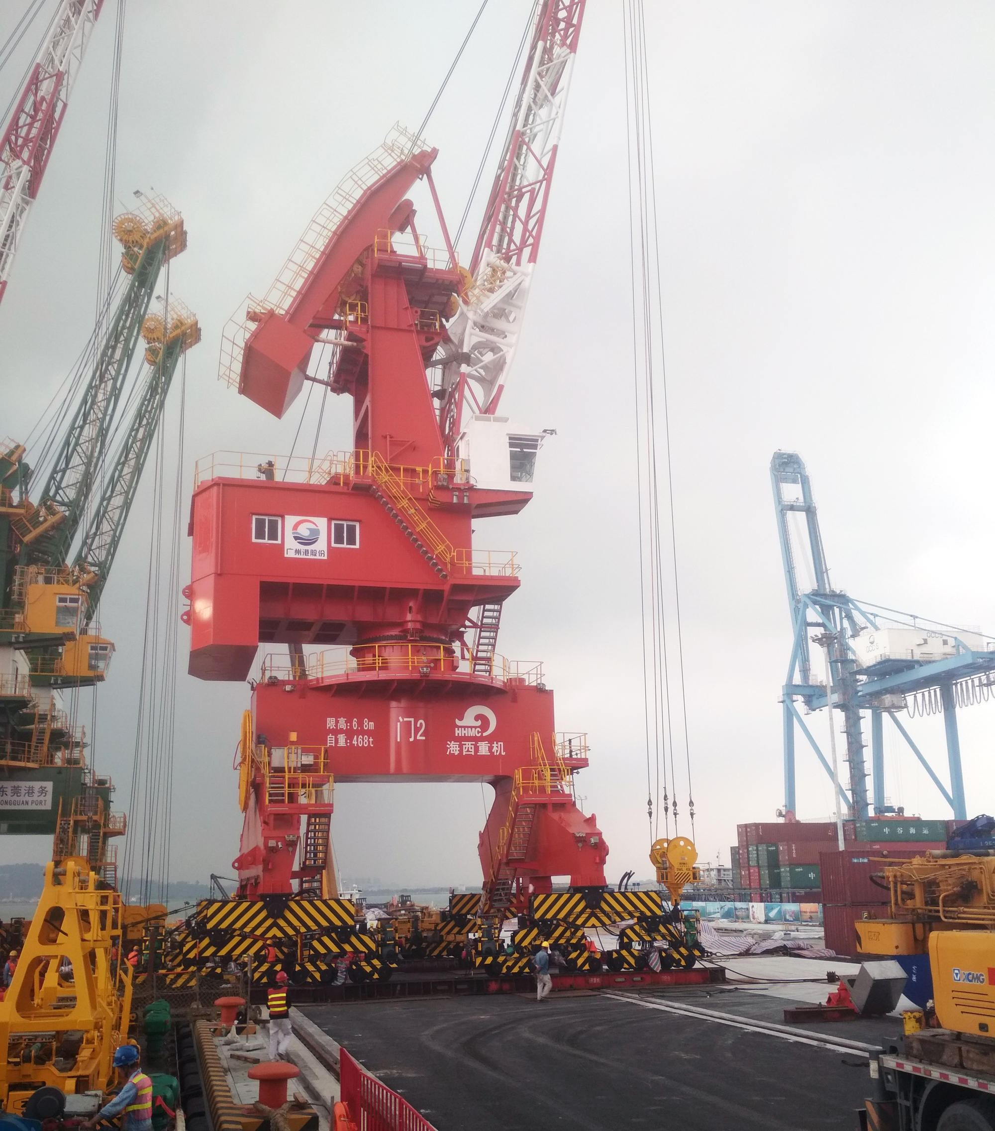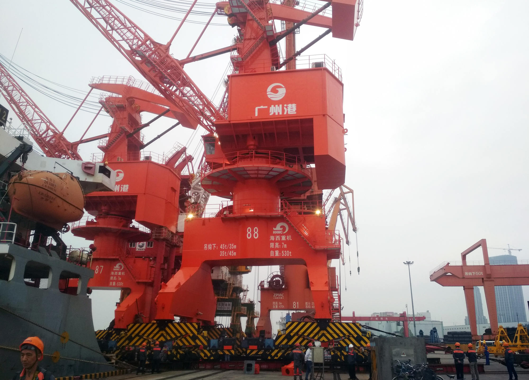 滿滿的一船門機(jī)。3月19日,我司分別為廣州港股份有限公司黃埔港務(wù)分公司、廣州港股份有限公司新沙港務(wù)有限公司、東莞市虎門港駁船碼頭有限公司制造的各2臺(tái)門機(jī)(共6臺(tái))在海西重機(jī)的生產(chǎn)碼頭同船順利發(fā)運(yùn)。3月26日,運(yùn)輸船安全抵達(dá)黃埔港,一場卸船攻堅(jiān)戰(zhàn)就此展開。