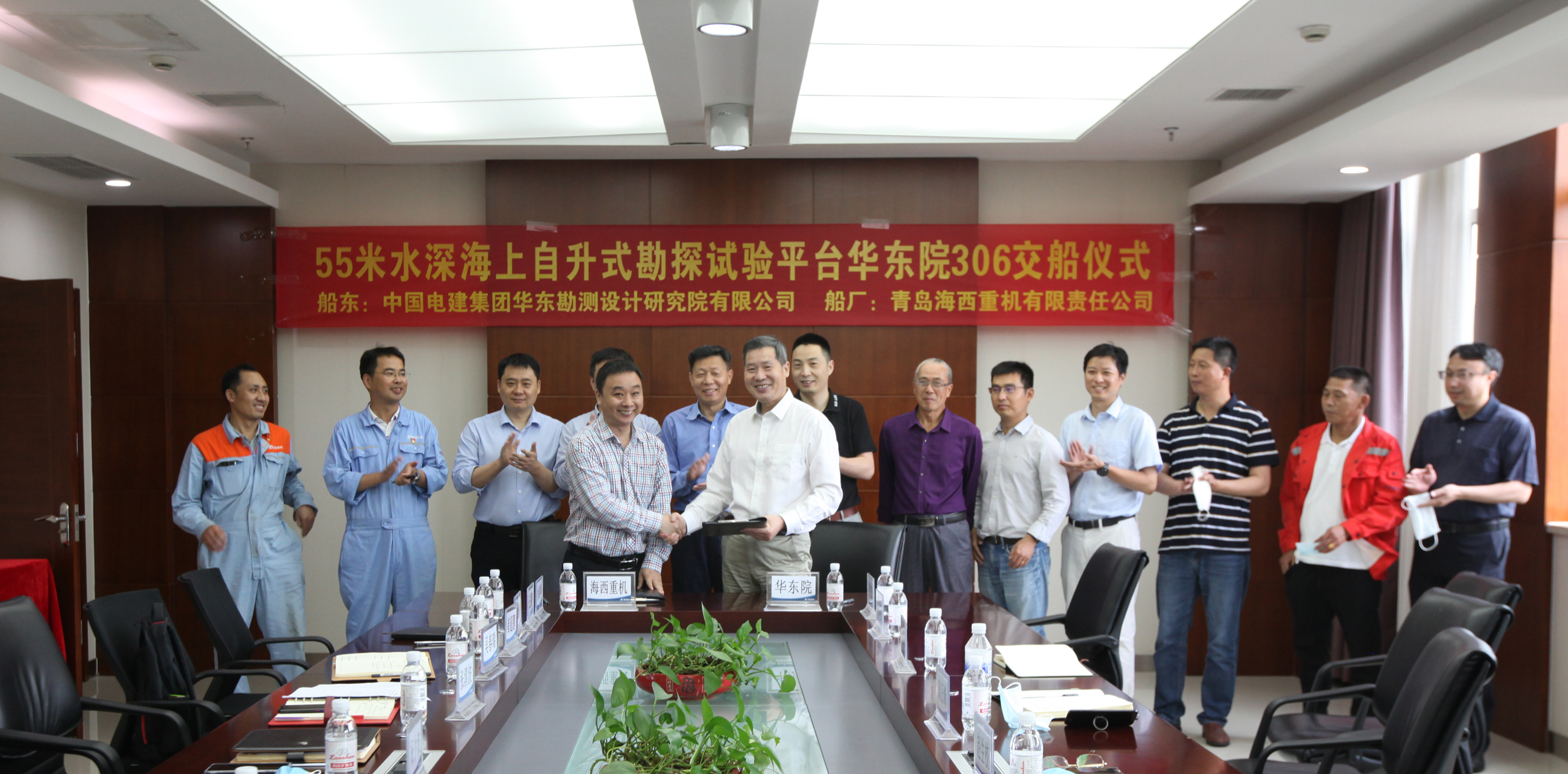 6月18日上午,華東院306自升式海上勘探平臺在武漢船機(jī)海西重機(jī)順利交付。