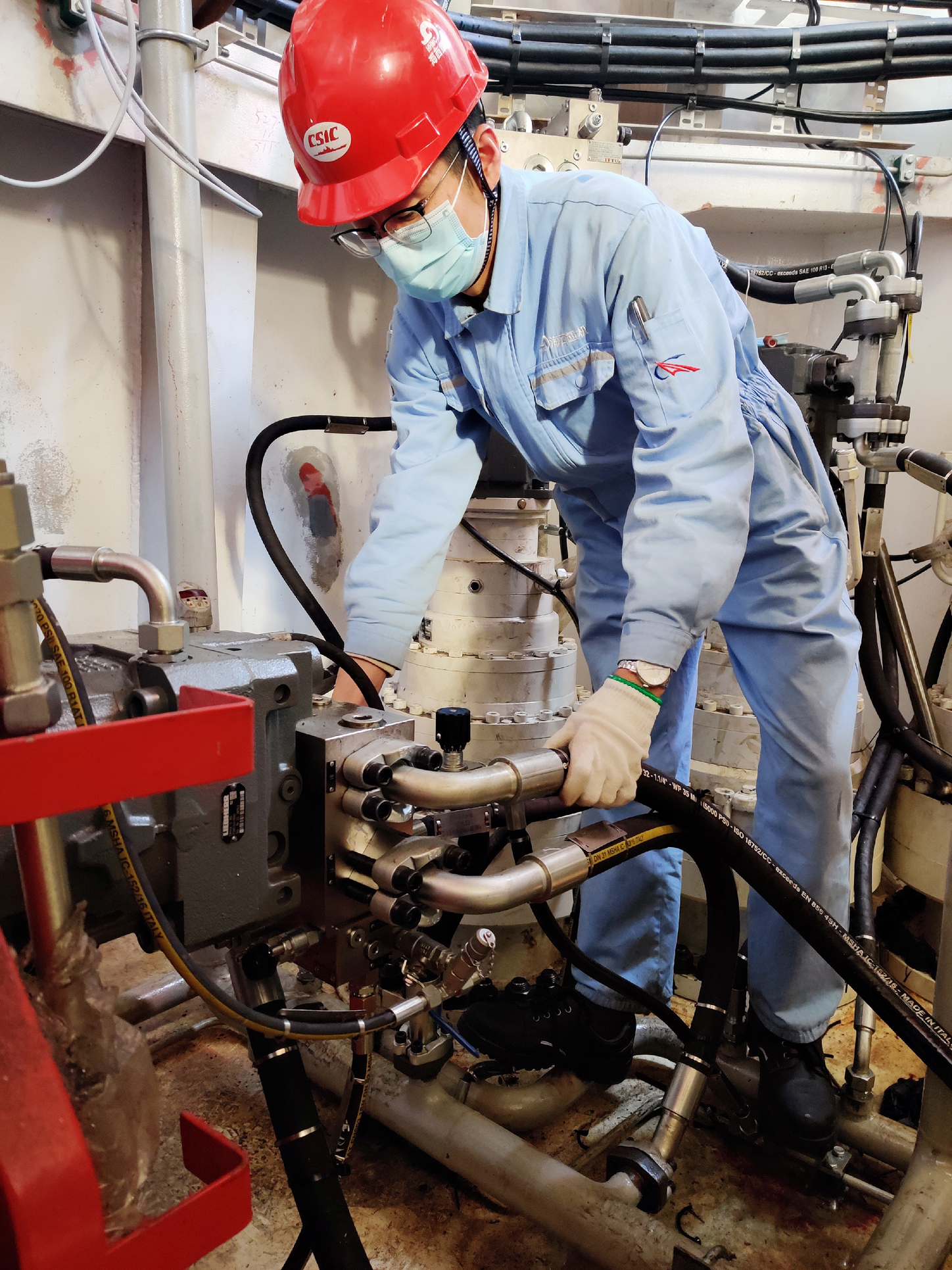 從管路預制,泵壓試驗,酸洗串油,到管路復裝,張偉康總是在馮鵬超的傳幫帶下,分工合作,恰似黃金拍檔。在海工設備后期液壓系統(tǒng)調試的半個月中,他們和總部工程師一起,每天主動加班調試到深夜。由于產(chǎn)生液壓系統(tǒng)故障的可能性因素較多,排查起來較為困難,面對調試中發(fā)生的諸多難題,他們迎難而上,敢于擔當,認真分析討論各種解決方案,并嚴格進行逐一排查,最終完美解決了故障。張偉康新人得力,敢于主動擔當,堅守液壓潤滑陣地,為保證整個項目按時交付爭分奪秒。