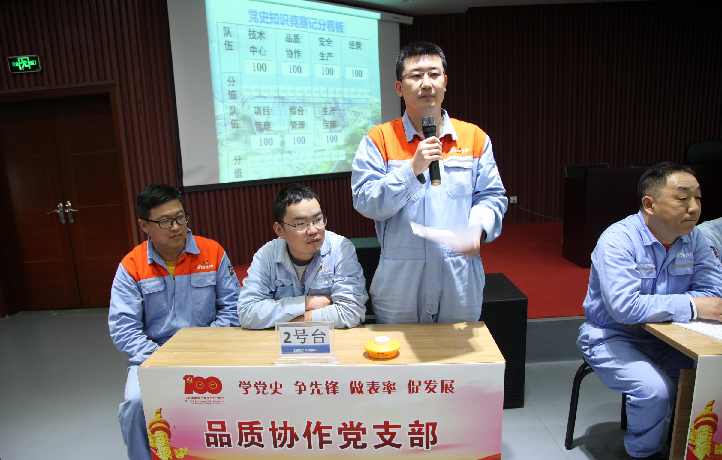 聚力同心齊奮進,學(xué)史激發(fā)新作為。為慶祝中國共產(chǎn)黨成立 100 周年,謳歌中華民族實現(xiàn)偉大復(fù)興的奮斗歷程,繼承革命先烈的優(yōu)良傳統(tǒng),傳承紅色基因,增進全體黨員干部對黨的知識的了解,5月20日,由中國船舶集團旗下武漢船機海西重機黨委主辦,公司團委協(xié)辦,以“學(xué)黨史 爭先鋒 做表率 促發(fā)展”為主題的黨史知識競賽火熱舉行,取得圓滿成功。