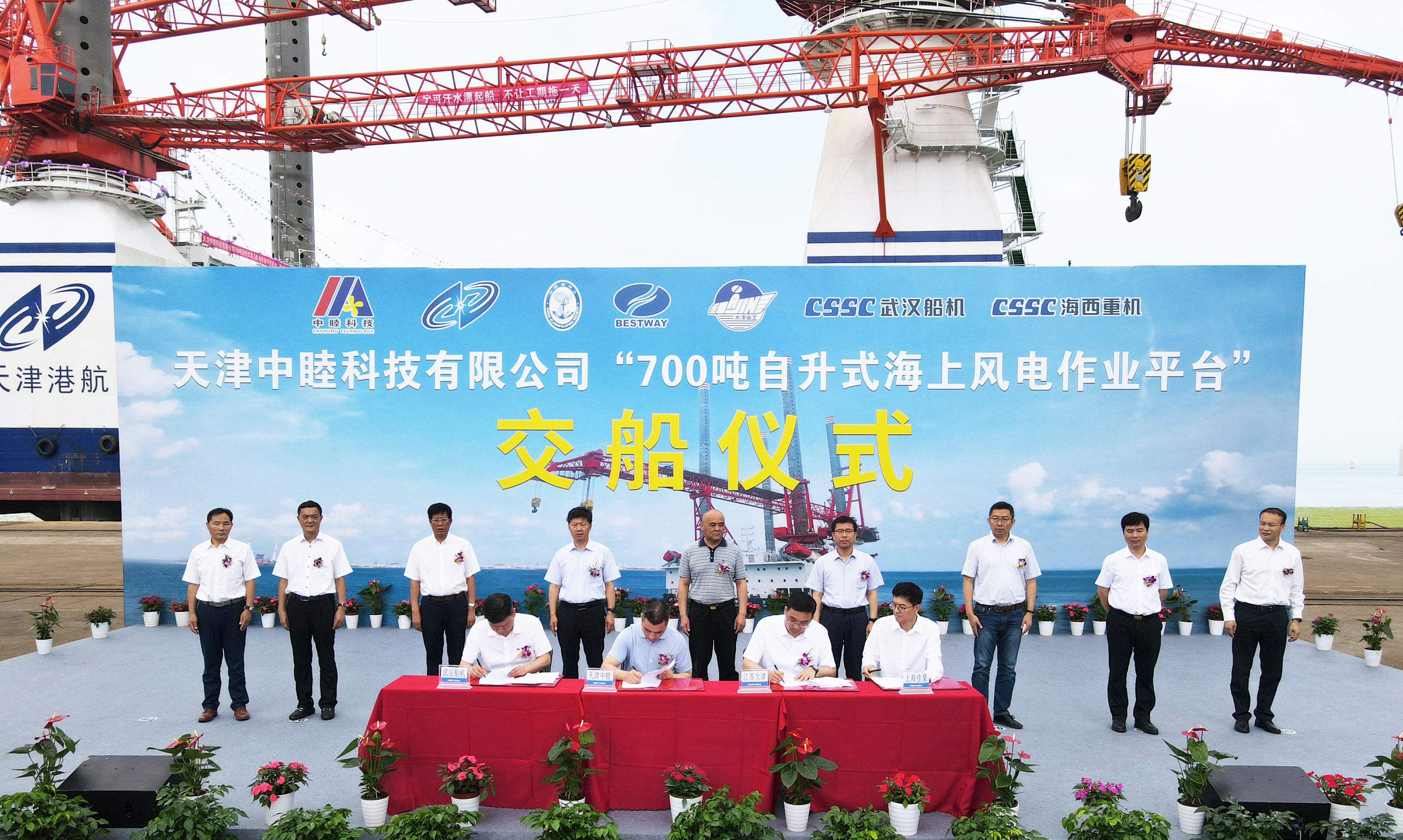 6月28日上午,天津中睦科技有限公司700T自升式海上風(fēng)電作業(yè)平臺(tái)——“港航平7”在中國(guó)船舶集團(tuán)旗下武漢船機(jī)海西重機(jī)順利交付。