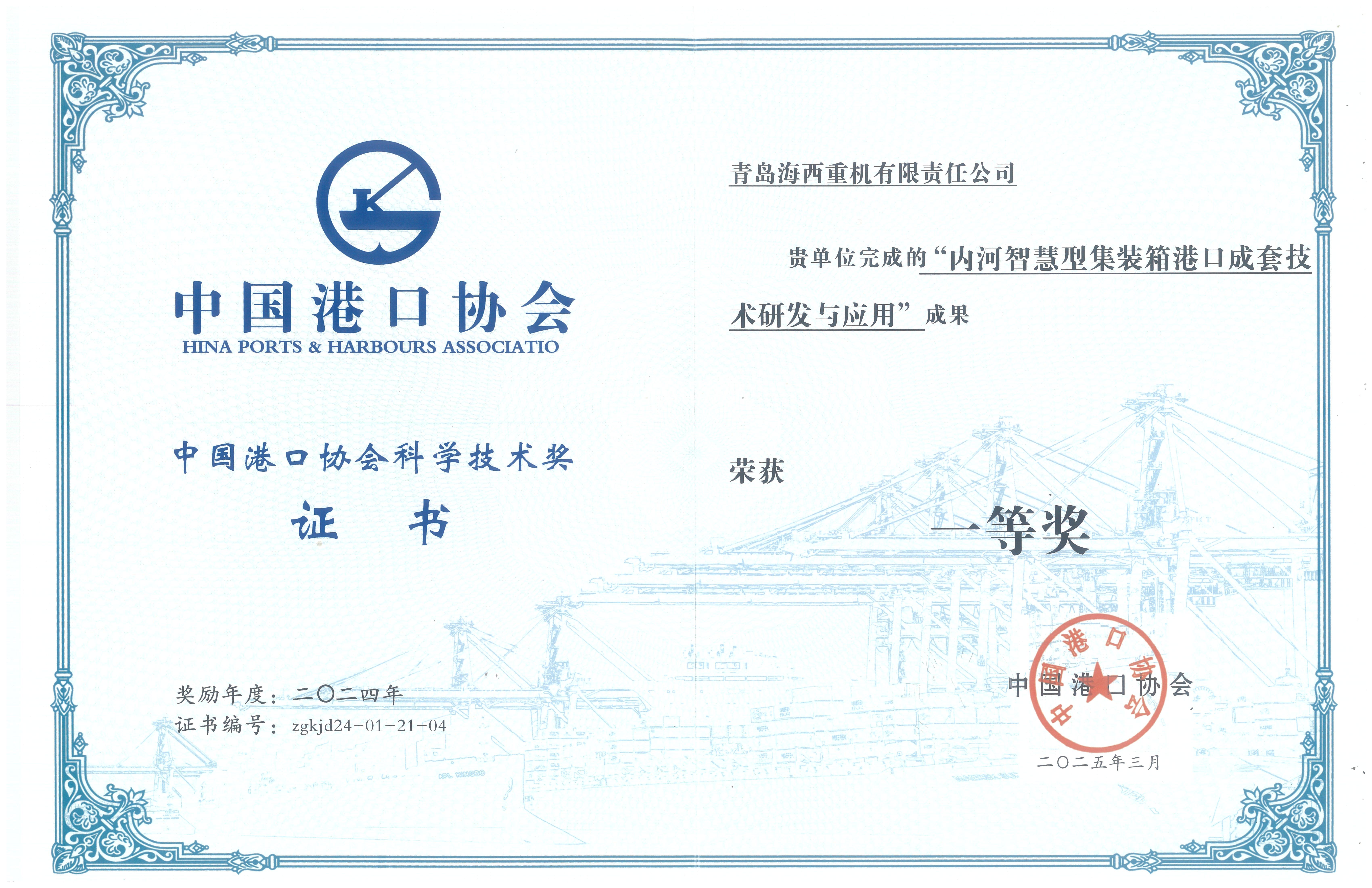 近日,由海西重機深度參與并共同申報的技術(shù)成果——龍拱港《內(nèi)河智慧型集裝箱港口成套技術(shù)研發(fā)與應(yīng)用》項目榮獲科技部和國家獎勵辦公室共同批準設(shè)立的2024年度“中國港口協(xié)會科學(xué)技術(shù)獎”科技進步一等獎。項目實施方龍拱港成為了江北內(nèi)河首個獲得中國港口協(xié)會科學(xué)技術(shù)一等獎的港口,這一突破標志著海西重機在智慧港口領(lǐng)域的技術(shù)創(chuàng)新與系統(tǒng)集成能力再獲國家認可。