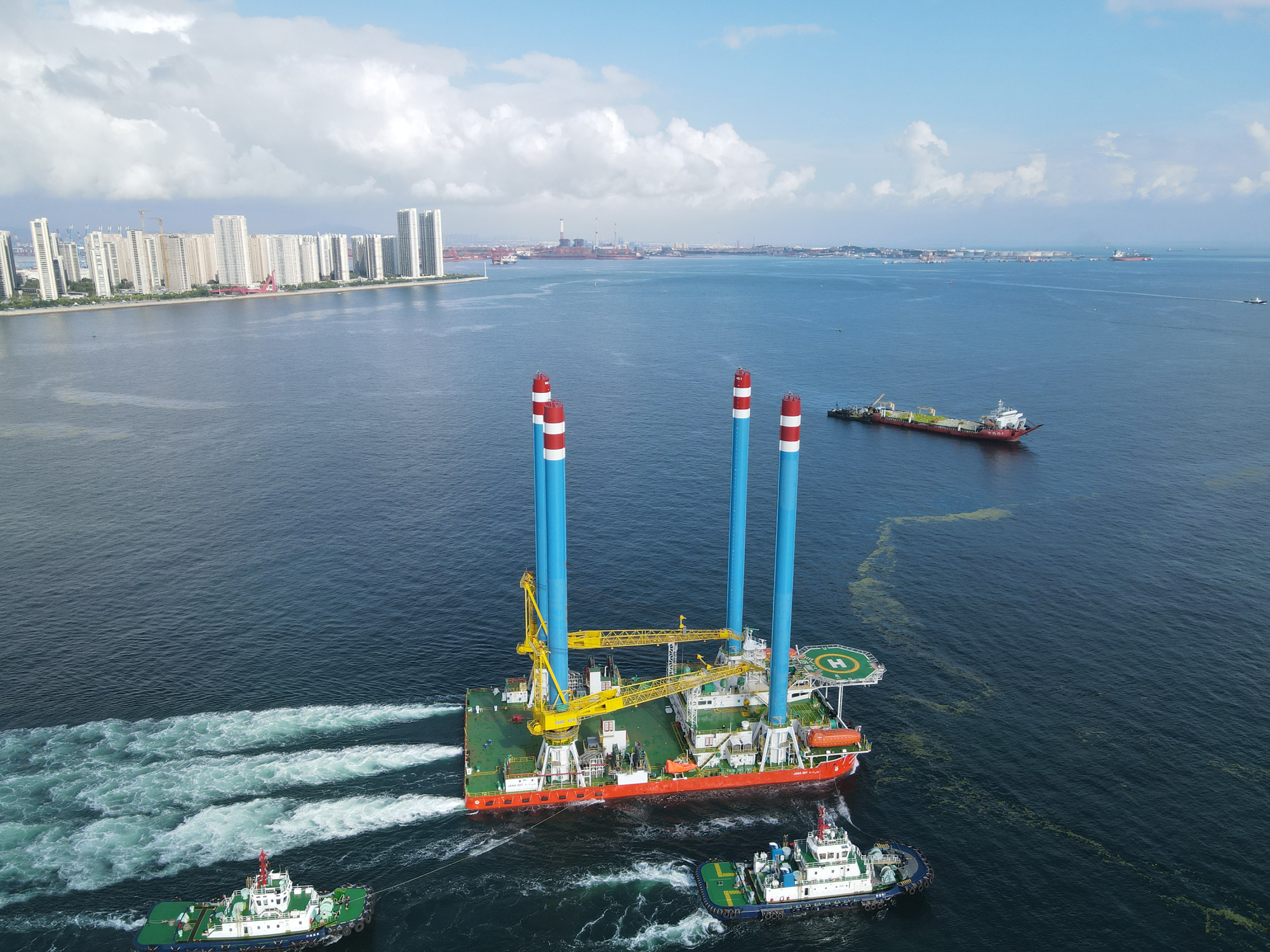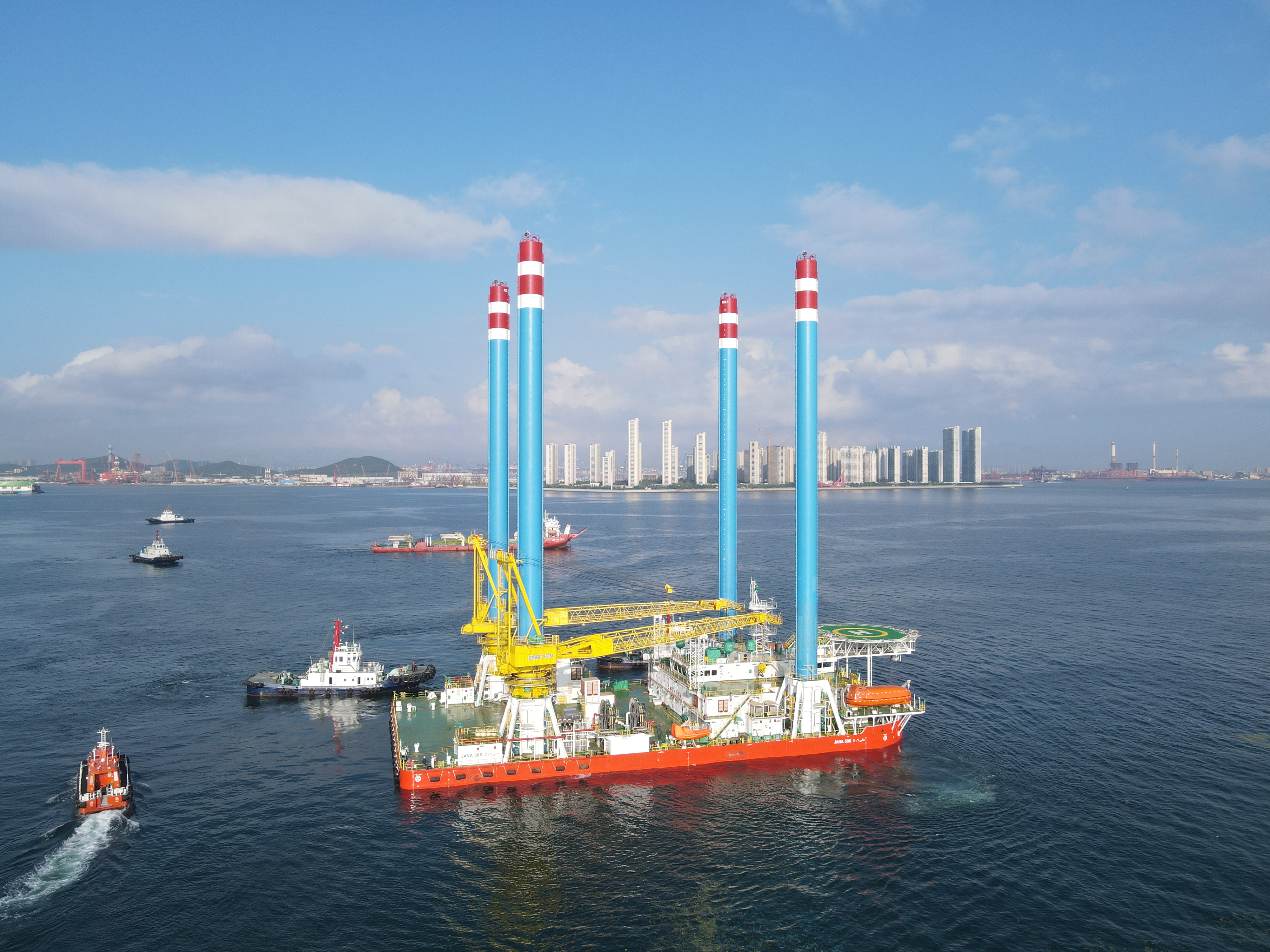 8月3日,在青島口岸官方部門海事、海關(guān)和邊防的大力支持下,中船集團武漢船機總包建造的JANA506、JANA507兩座新一代淺吃水自升式海上作業(yè)支持平臺從青島海西重機碼頭順利起航,開赴沙特。該海工平臺滿載情況下吃水 2m,能夠滿足波斯灣特殊淺水海域油田的服務(wù)工作,這批裝備的交付助力“一帶一路”倡議再添新成果。