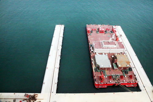 5月份,由武漢船機(jī)投資建設(shè)的青島海西重機(jī)突堤碼頭順利通過山東省交通廳驗(yàn)收,標(biāo)志著國內(nèi)首個(gè)配備了1600噸和300噸大型龍門起重機(jī)的突堤碼頭圓滿建成并投入使用。