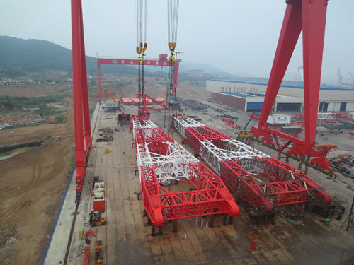 6月23日,由青島海西重機(jī)承制的3600t浮式起重機(jī)在突堤碼頭順利完成臂架安裝第一吊。該浮式起重機(jī)臂架總長(zhǎng)130m,寬24m,高10m,臂架總重1000噸。此次吊裝的順利完成對(duì)公司的碼頭吊裝作業(yè)具有里程碑式的深遠(yuǎn)意義,為后續(xù)大型岸橋整體吊裝上船、海工平臺(tái)吊裝組裝等大型吊裝作業(yè)奠定了堅(jiān)實(shí)基礎(chǔ)。