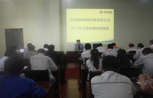 5月22日,海西重機(jī)邀請(qǐng)黃島區(qū)人民檢察院對(duì)口部門,在海西重機(jī)舉辦了2014年反腐倡廉培訓(xùn)講座,公司黨委書(shū)記孫總參加了培訓(xùn)講座。